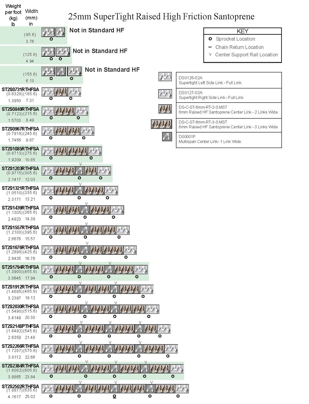 25MM 6MM RAISED SANTOPRENE HIGH FRICTION SUPER TIGHT CHAIN (ALL WIDTHS AVAILABLE)