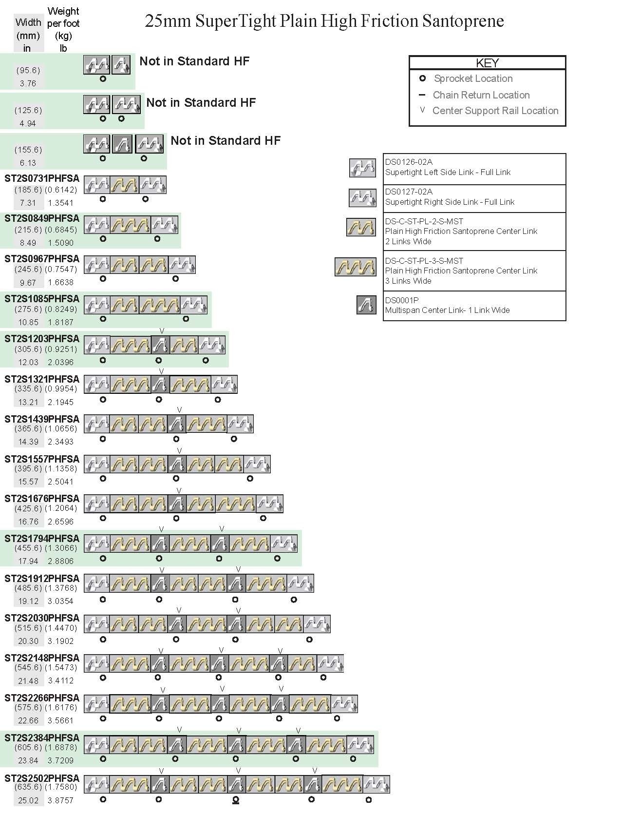 25MM FLAT SANTOPRENE HIGH FRICTION SUPER TIGHT CHAIN (ALL WIDTHS AVAILABLE)